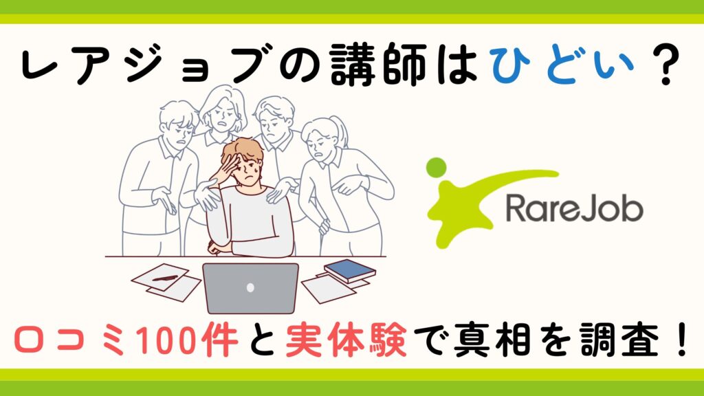 1. レアジョブ 講師 ひどい(レアジョブの講師はひどい?口コミ100件と実体験から真相を調査!)「レアジョブの講師はひどい?」口コミ100件を分析し、実際に体験して分かった真相を紹介。講師が合わない原因と対処法、良い講師の見つけ方も解説します。