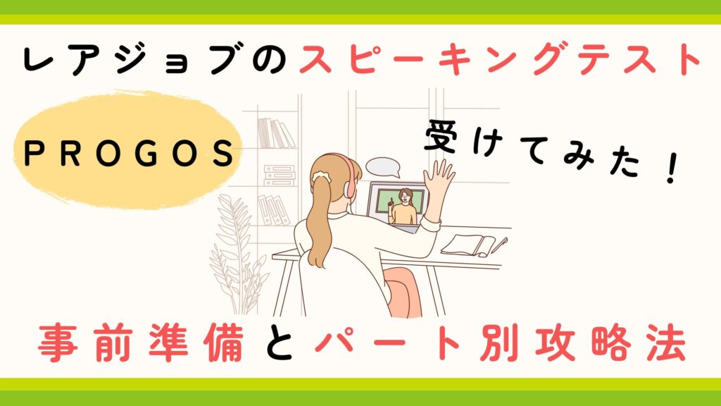 レアジョブのスピーキングテストを実際に受けた体験談をもとに、事前準備のポイントやパート別の攻略法を解説。無料体験で受けられるPROGOSの特徴や、自分の英語レベル・今後の課題を知る方法が分かります。 -