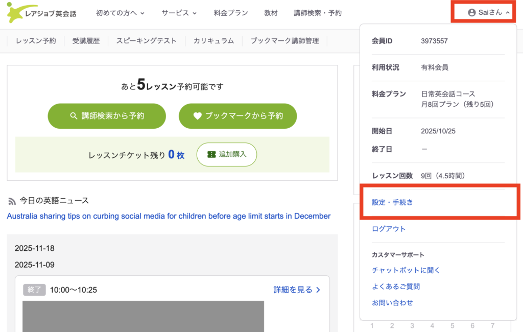 ここではレッスンの休会のやり方を画像付きで解説、注意点もあわせて紹介します。