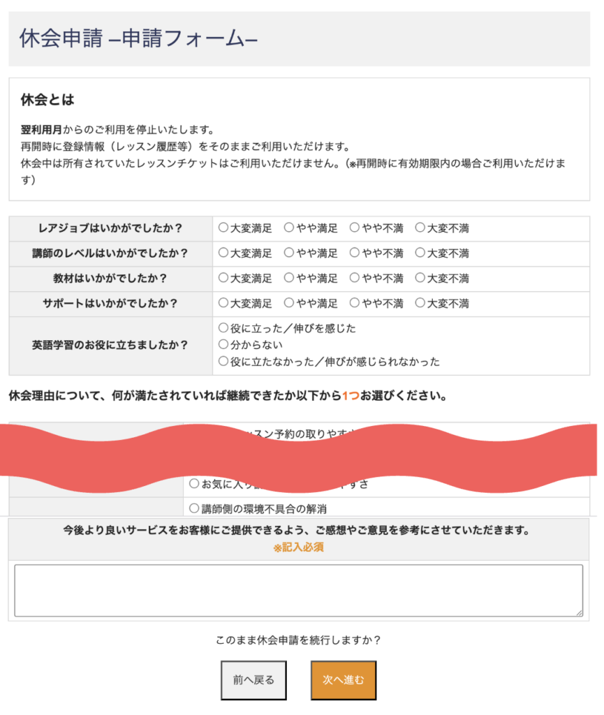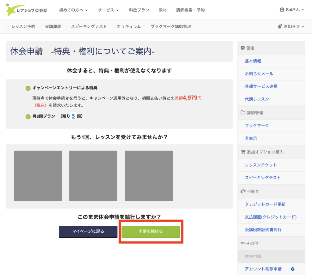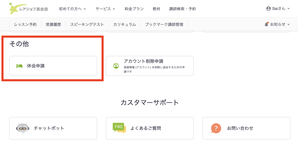 レアジョブ休会の手順