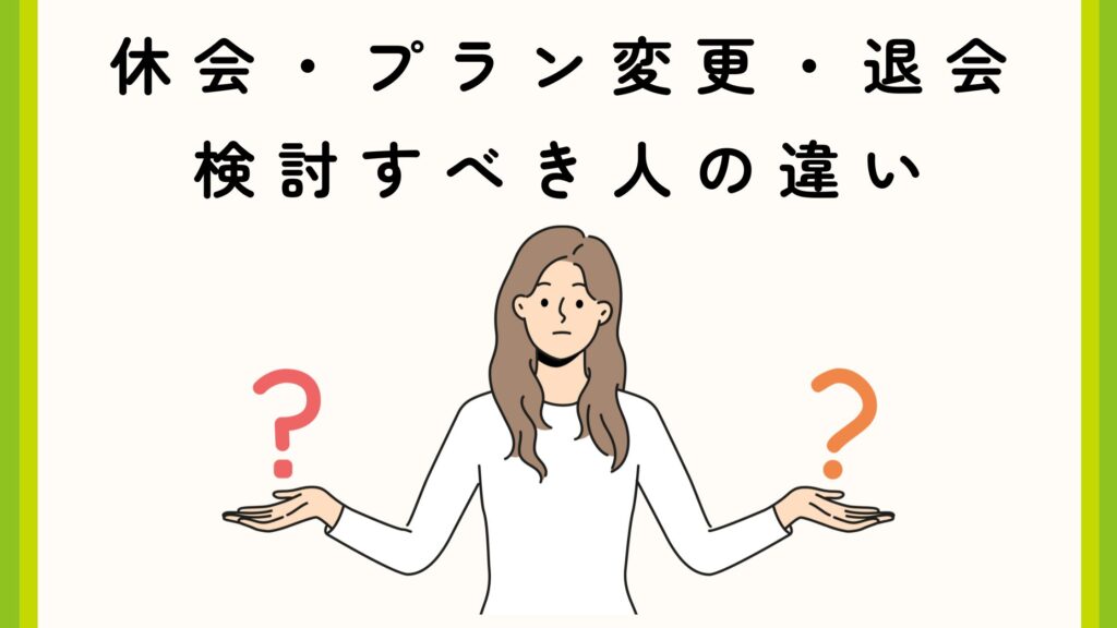 あなたの状況に合わせて「休会」「退会」「プラン変更(継続)」の中から、最適な一歩を踏み出しましょう。