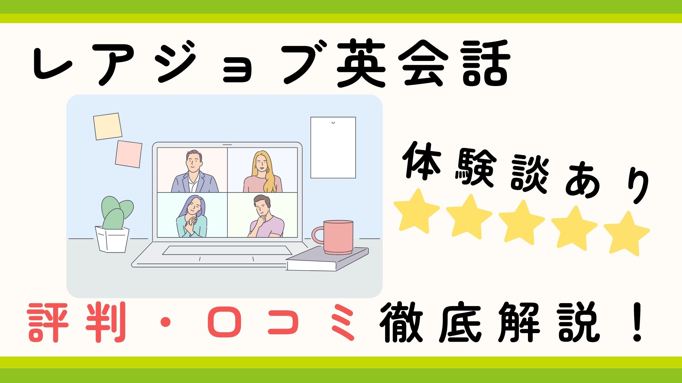 本記事では、実際にレアジョブ英会話を体験・受講した筆者が、レアジョブ英会話の評判・口コミとあわせて、良い点・気になる点を正直に解説します。